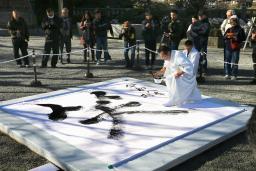 ◎「笑」の大切さ忘れない年に 熊野本宮大社で大筆書き