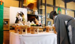 和歌山電鉄貴志駅で営まれた、2代目猫駅長「ニタマ」の社葬=13日午後、和歌山県紀の川市