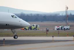 ダレス国際空港に引き返したユナイテッド航空機=13日(ロイター=共同)